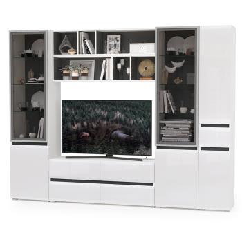 Гостиная Mobi Сидней № 32 – это современное решение для обустройства вашего интерьера. Комплект выполнен в элегантном бело-чёрном цвете с глянцевыми фасадами из МДФ, что придаёт ему стильный и лаконичный вид. Этот гарнитур идеально подойдёт для просторных гостиных, где важны и эстетика, и практичность.