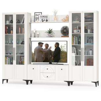 Набор мебели для гостиной Валенсия №65 от бренда Mobi – это идеальное сочетание современного дизайна, практичности и высокого качества. Белоснежная глянцевая поверхность в цвете Белый Шагрень придаст вашему интерьеру легкость и элегантность, а продуманная конструкция обеспечит удобство хранения вещей.