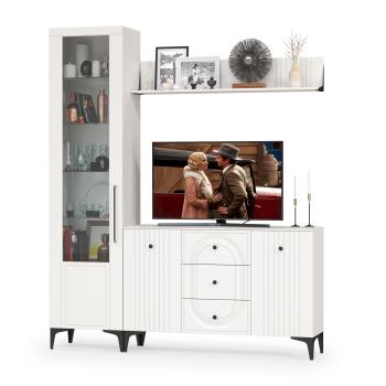 Комод-тумба под ТВ с полкой и пеналом со стеклом Валенсия № 93