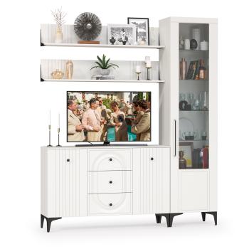 TV-тумба-комод Mobi Валенсия № 94 в цвете "Белый Шагрень" – это элегантный и функциональный предмет мебели, который идеально впишется в современный интерьер гостиной. Ее габариты (188,2×38,4×225,2 см) позволяют разместить телевизор и множество других необходимых вещей, сохраняя при этом ощущение простора в комнате.