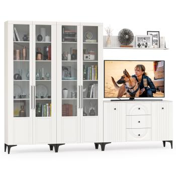 Современный дизайн в прямоугольных формах с элементами витрины делает эту мебель универсальным решением для различных стилей интерьера.