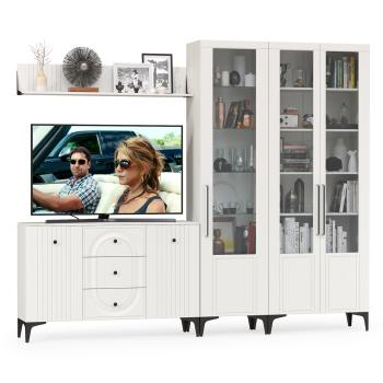 Гостиная выполнена в современном стиле с прямоугольными формами. Белый цвет шагрень придает мебели благородный вид, делая ее универсальным решением для различных интерьерных концепций.