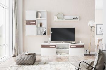 Оригинальное цветовое решение, ясень анкор светлый/дуб бомонд какао, делает мебель из коллекции Акита универсальным, но стильным вариантом для организации хранения в гостиной.