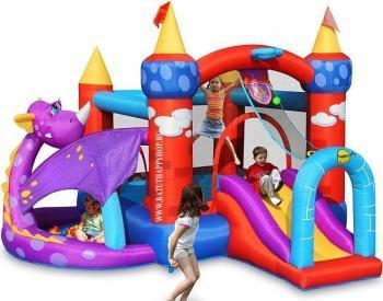 Подъем: ПВХ ламинированный (laminated PVC) Горка: скользящая поверхность: ПВХ ламинированный, ламинированная ткань Оксфорд.