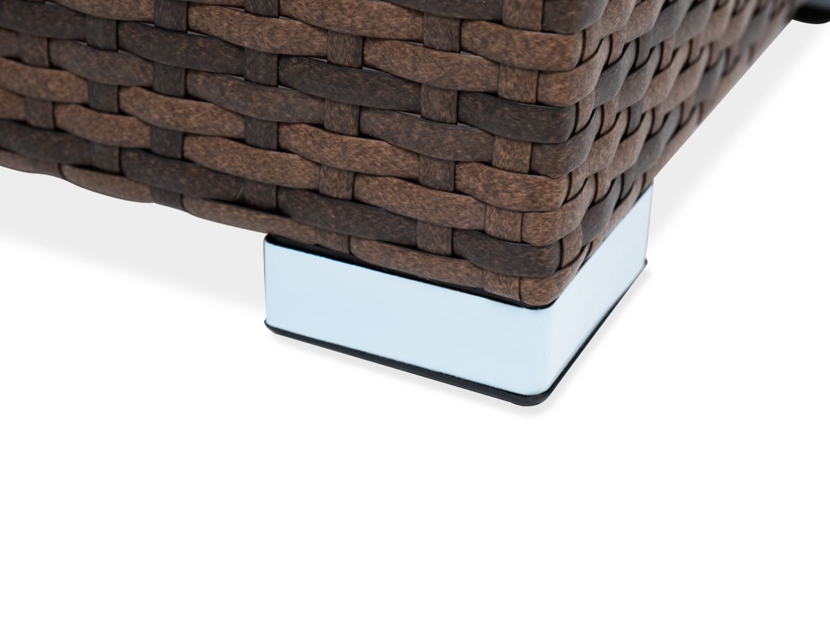 В основе алюниевый каркас, который вручную оплетен ротангом.