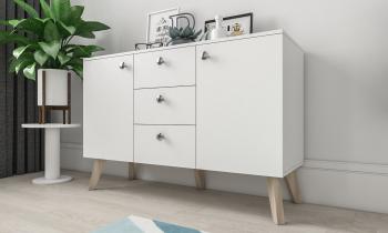 Наполнение: Комод 3 ящика, за распашными дверьми 1 полка. Направляющие ящиков: шариковые 100% полного выдвижения. Высота ножек 200 мм.
