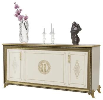 Тумба 4-х дверная Версаль ГВ-05. Изысканное и практичное оформление Ваших королевских апартаментов. Закрытые распашными дверками отделения с полкой удобны для атрибутов застолья или отдыха, а широкая столешница идеальна для декора и презентаций.