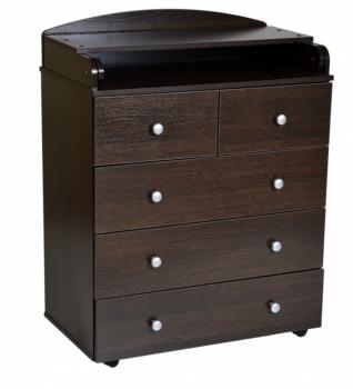 Комод с пеленальным столиком и пятью выдвижными ящиками на роликовых направляющих для хранения детских вещей, удобный недорогой комод, выполнен в классическом дизайне.