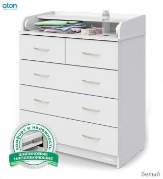 Комод Атон «Сириус» ЛДСП – удобный и практичный комод с пеленальным столиком – незаменимый предмет для детской комнаты. Пеленальный столик с откидной крышкой не только помогает маме в переодевании ребенка, но при этом экономит пространство в помещении за счет удобного механизма складывания. 5 вместительных ящиков с лёгкостью выдвигаются и задвигаются на шариковых направляющих.