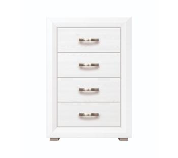 Комод состоит из 4 выдвижных ящиков на шариковых направляющих, где вы можете хранить элементы декора, бумаги, документы и другие важные вещи. Гладкие металлические ручки подчеркивают стильный дизайн и удобны в использовании.