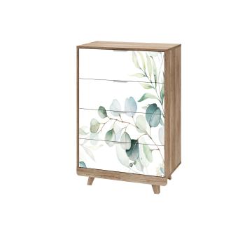 Отличительная черта комодов серии Мегаполис – сочетание теплого оттенка дерева и фотопечати с трендовым рисунком. На таких поверхностях не видно пыли и грязи, что является огромным плюсом для домохозяек. Модель КМ-02 имеет четыре ящика на шариковых направляющих.