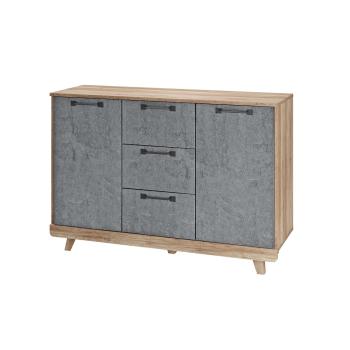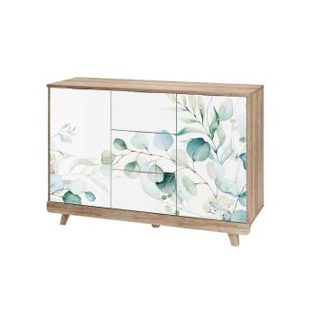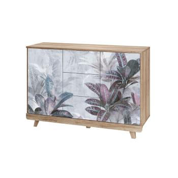 Отличительная черта комодов серии Мегаполис – сочетание теплого оттенка дерева и фотопечати с трендовым рисунком. На таких поверхностях не видно пыли и грязи, что является огромным плюсом для домохозяек. Комод состоит из двух распашных по бокам и трёх выдвижных по центру вместительных ящиков. Полезное пространство распашных ящиков разделено полками.