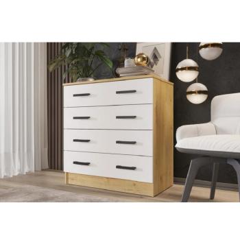 Лаконичное сочетание древесного оттенка с белым гладким создает привлекательный вид комода и позволяет вписать его в интерьер спальни, гостиной, прихожей или детской. Модуль поможет организовать место хранения вещей, белья, аксессуаров и игрушек.
