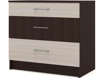 Комод для спальни Алена, с тремя ящиками, в крашении молочного дуба и цвета Венге. Очереднсть цветовых гамм фасадов ящиков с различной вместимостью, легко позволяют изделию украсить обстановку любого помещения. Идеально компонуется с комплектом спальной системы «Алена» идентичного крашения.