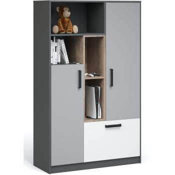 Изготовленный из ЛДСП австрийского производства, комод отличается высокой прочностью и долговечностью. Цвет каркаса антрацит и фасада в оттенке шиншиллы с белым создают элегантный контраст. Комод оснащен двумя дверцами и вместительными полками, что обеспечивает удобное хранение вещей.