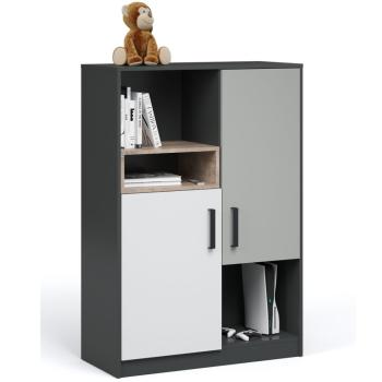Изготовленный из ЛДСП австрийского производства, комод отличается высокой прочностью и долговечностью. Цвет каркаса антрацит и фасада в оттенке шиншиллы с белым создают элегантный контраст. Комод оснащен двумя дверцами, что обеспечивает удобный доступ к содержимому.