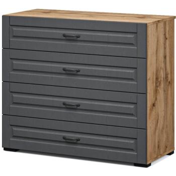 Изготовленный из ЛДСП австрийского производства, комод отличается высокой прочностью и долговечностью. Цвет каркаса в дубе вотан и фасада в оттенке Сканди графит создают современный и элегантный вид. Комод имеет четыре вместительных ящика, что обеспечивает удобное хранение ваших вещей.