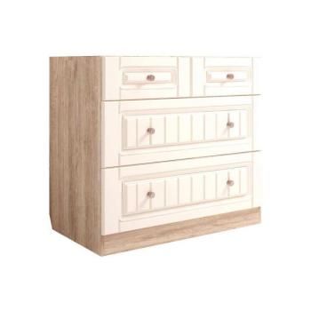 Нежный прованс для ценителей уюта — фактурное дерево, кремовые фрезерованные фасады, металлические ручки с патиной. Модульный ряд позволяет создавать разные компоновки под габариты комнаты.