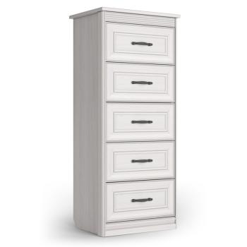 Если вам нужно купить мебель в спальню, присмотритесь к классической коллекции «Неаполь», здесь вы найдете широкий модельный ряд шкафов, всевозможных комодов и кроватей. Комод высокий – это вместительный модуль для хранения вещей и аксессуаров. В его конструкции предусмотрены 5 выдвижных ящиков на шариковых направляющих с механизмом полного выдвижения. Столешница предмета мебели может служить для размещения различных красивых предметов, картин или семейных фото. Таким образом, применение данного модуля в спальне позволит не только заполнить пространство, хранить вещи, но и украсит интерьер вашей комнаты.