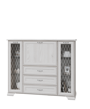 Комод с двумя стеклянными дверками Николь станет незаменимым элементом для обустройства уютной комнаты. Компактное изделие обладает необычайно вместительностью и способно заменить громоздкий шкаф. Три выдвижных ящика и отделение, скрытое за глухой дверцей, пригодятся для бережного и аккуратного хранения одежды и белья, косметики и всевозможных аксессуаров. За распашными дверьми со стеклом вы сможете разместить наборы посуды и хрупкие вазы, а сверху на комоде отлично будут смотреться фотографии любимой семьи и различные декоративные украшения.