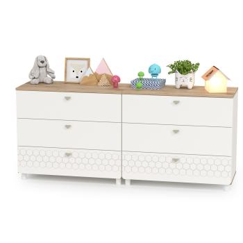 Комод Mobi Эйп – это два комода, объединенных в единый блок, которые станут идеальным решением для хранения вещей в детской комнате. Модель выполнена в нежном белом цвете с декором под дуб белый, что делает ее универсальной для любого интерьера.