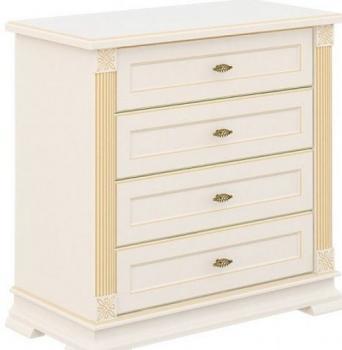 Комод Афина МН-222-11 – красивая многофункциональная мебель для лучшего обустройства вашего дома. Красивый комод стандартных размеров, который прекрасно дополнит комнату с любым интерьерным решением. Модель имеет довольно изысканный и аристократичный вид. Этому способствует сочетание белого и золотого. Такой тандем всегда выглядит дорого и по-богатому. Среди особенностей модели: европейские материалы, патирование, металлические ручки от Gamet (Польша), четыре выдвижных ящика с бесшумными направляющими с доводчиком Quadro от Hettich (Германия), петли – Intermat от Hettich. Качество изделия на высшем уровне.