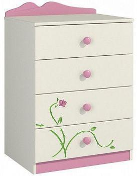 Комод Розалия К60-1Д1. Очень интересный комод, который скорее подойдет к женской спальне или для очень романтичных натур. Белый цвет в сочетании с розовым выглядит очень нежно и по весеннему. Такой комод станет также прекрасным дополнением к детской комнаты в которой проживает девочка. В наличии четыре выдвижных ящика. Среди особенностей модели: европейские материалы, рисунок на фасадах выполнен 3D гравировкой с внедрением ручной покраски, ручки – массив дерева, петли Slide on Hettich, система выдвижения – роликовые направляющие полного выдвижения.