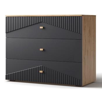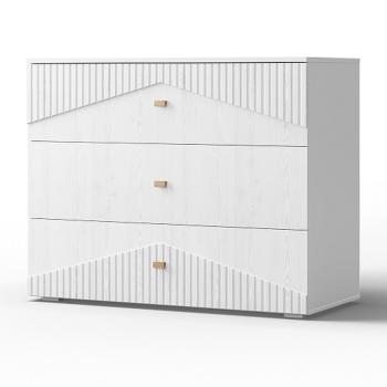 Изготовленный из прочного ЛДСП, комод обещает длительный срок службы. Фасады выполнены из МДФ с ПВХ-покрытием, что придаёт изделию современный вид. Он оснащён тремя вместительными ящиками, что обеспечивает удобное размещение различных вещей и легкий доступ к ним.