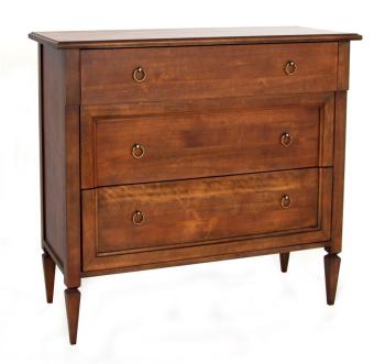 Высокие ножки (21 см) не только придают комоду изящный вид, но и облегчают уборку под ним. Три просторных ящика с плавным ходом позволяют удобно хранить белье, одежду или другие необходимые вещи.