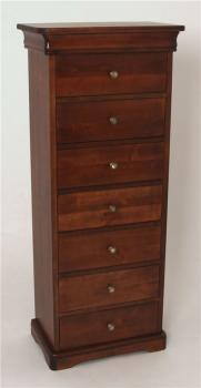 Комод RB 28 – это идеальное сочетание функциональности и эстетики. Его узкая конструкция (всего 32 см в глубину) позволяет разместить его даже в ограниченном пространстве, при этом он предлагает значительный объем для хранения благодаря семи вместительным ящикам.