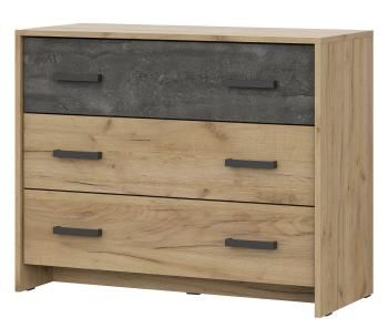 Комод Лофт создан в рамках коллекции мебели для спальни Лофт, но будет также актуально смотреться в прихожей и гостиной. Комплектуется тремя выдвижными ящиками на роликовых направляющих. Фасад верхнего в декоре “камень темный” добавляет модулю стиля и гармонично сочетается с древесной текстурой корпуса. Модуль подойдет для хранения белья, аксессуаров и вещей в сложенном виде.