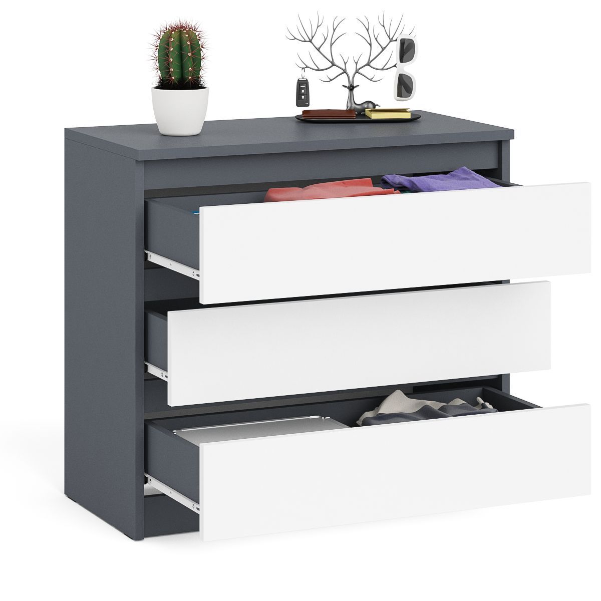 Комод три ящика Мори МК800.1. Габариты (ШхГхВ) 80,4х41х73 см. Классический комод с тремя выдвижными ящиками на роликовых направляющих. Продуманная конструкция позволяет убрать лишние предметы, тем самым сохраняя единый стиль оформления помещения. Отсутствие ручек главное преимущество данной модели. Роль ручек выполняют сами фасады.