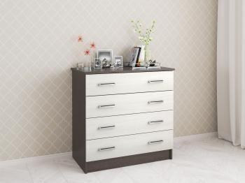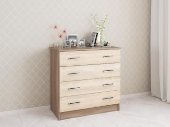 Комод оснащен выдвижными ящиками, установленных на роликовых направляющих, что обеспечивает плавное и легкое открывание. Максимальная распределенная нагрузка на дно каждого ящика составляет 8-10 кг, что делает его надежным и функциональным для хранения различных вещей.