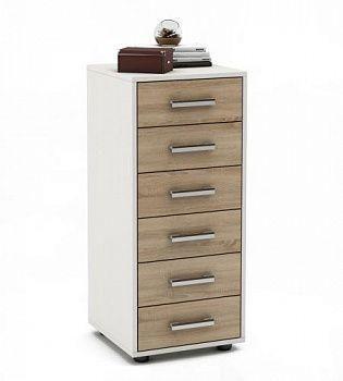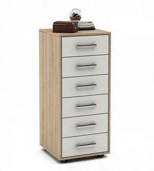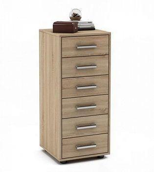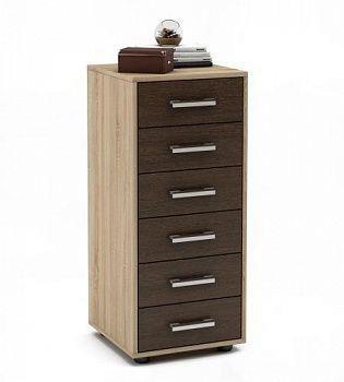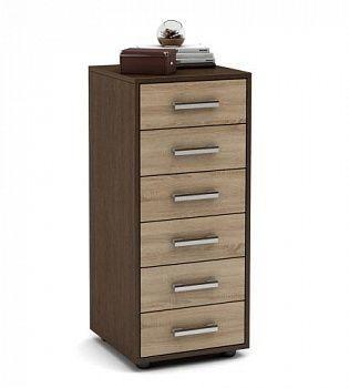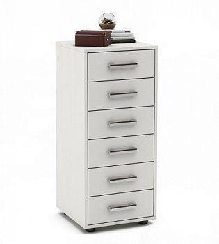 Торцы мебели обклеены кромкой ПВХ, которая защищает мебель от повреждений. Комод имеет 6 выдвижных ящиков на металлических направляющих. Они