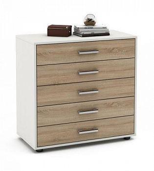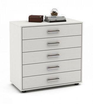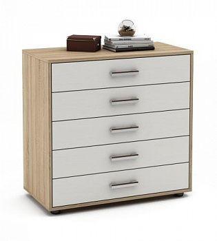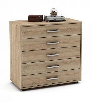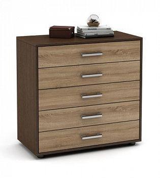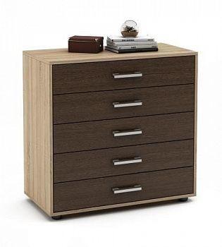 Комод МФ Владимир Остин-7 имеет пять выдвижных ящика на металлических направляющих. Кромкой ПВХТ обклеены торцы мебели, которая