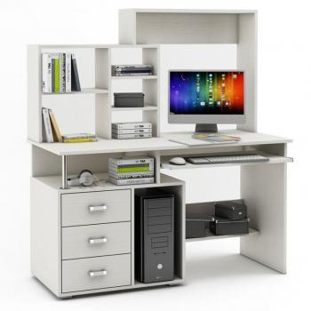 это удобная модель для работы или учебы, так как имеет полку для системного блока и тумбу с 3-мя вместительными ящиками, полку