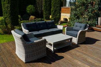 Материал 3-х м.дивана: искусственный ротанг/алюминий, подушки: 100% polyester с наполнителем