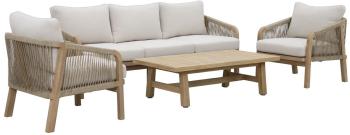 Диванная группа Ravona, рассчитанная на 5 персон, – это садовая мебель из АКАЦИИ в современном стиле. Дизайнерские формы мебели из этой коллекции создадут стильный и узнаваемый облик зоны отдыха на вашей веранде. Ravona – это современная коллекция садовой мебели из акации, выполненная в комбинации натурального веревочного плетения роуп, массива акации и бежевых подушек. Цвет натуральной твердой древесины представляет собой натуральный цвет с мелкой текстурой, придающий древесине приятный теплый вид. Ravona – это стиль и элегантность на Вашей веранде.