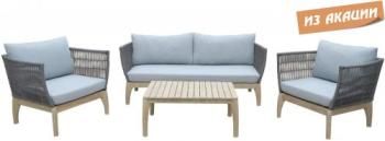 Иногда мелкие детали могут решить все! Сочетая в себе прочную выбеленную древесину твердых пород АКАЦИИ, холодно-серую двойную оплетку морского каната и водостойкие, легко чистящиеся мягкие подушки светло-серого оттенка, уличный комплект для отдыха River обеспечивает идеальный баланс между долговечностью и стилем.