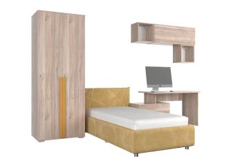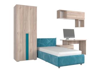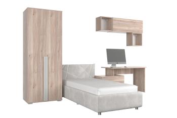 Шкафы и тумбы обеспечат удобное хранение вещей, просторная кровать создаст комфортное спальное место, а стол станет идеальным местом для занятий. Навесные полки дополнят интерьер и помогут организовать пространство.