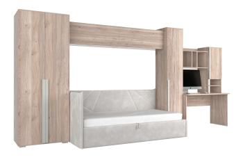 Мебель выполнена в современном стиле из качественного ЛДСП – материала, который отличается прочностью, долговечностью и простотой в уходе. Комплект подойдет как для дошкольников, так и для подростков.