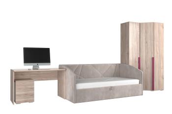 Мебель изготовлена из качественного ЛДСП, что гарантирует долговечность и простоту в уходе. Современный дизайн гарнитура делает его универсальным решением как для детской, так и для подростковой комнаты.