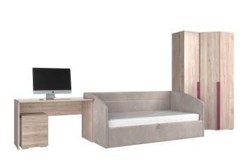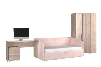 Мебель изготовлена из экологичных материалов, соответствует всем требованиям безопасности для детской мебели. Угловое расположение шкафа позволяет рационально использовать пространство комнаты.