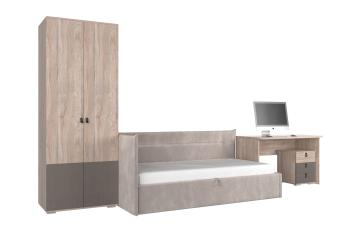Мебель выполнена из качественного ЛДСП, что гарантирует долговечность и простоту в уходе. Современный дизайн гарнитура подойдет как для мальчиков, так и для девочек, а нейтральная цветовая гамма легко впишется в любой интерьер.