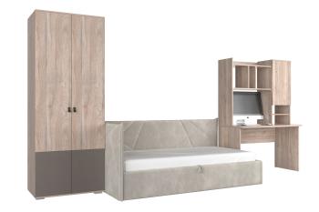 Комплект «Модерн К14» – это отличное решение для детской комнаты, где важно рационально использовать пространство. Шкаф с двумя дверцами обеспечивает удобное хранение одежды, кровать-тахта экономит место, а стол с надстройкой создает комфортную зону для учебы и творчества.