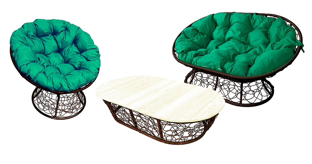 Комплект из дивана Мамасан, кресла Папасан и стола с плетением из полиротанга – отличное решение для оформленя Вашего загородного дома или дачного участка. Комплект прекрасно вписывается в любой ландшафт, чтобы Вам приятно отдыхать на свежем воздухе, особенно в приятной компании. Металлический каркас с плетением из экоротанга выполнен из металла 20х1 мм (внешнее) в четырёх цветовых вариантах и выдерживает нагрузку до 180 кг. Окрашено порошковой краской высокого качества от европейского производителя. Искусственный ротанг – это уникальный материал, он лёгкий, но при этом прочный, а также подлежит повторной переработке! Мягкая подушка со съемным чехлом, входящая в комплект, выполнена из плотной гипоаллергенной и влагостойкой ткани Оксфорд 600, представленная широкой цветовой палитрой. Изделие не требует специального ухода или особых условий хранения, устойчиво к коррозии и различным погодным условиям.