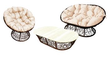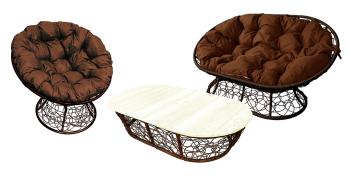 Комплект M-group Мамасан, Папасан и стол с ротангом коричневое