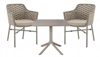 Комплект Clip 80 Torino состоит из квадратного стола и двух кресел.
