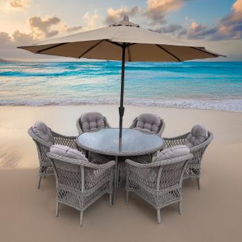 Комплект плетеной мебели Афина T219/270-8k/LV-217 (6+1) с зонтом