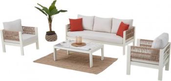 Комплект плетеной лаунж мебели Toscana – это идеальное решение для обустройства зоны отдыха как в сфере Contract, так и в частном проекте. Благодаря стильному внешнему виду и своим характеристикам комплект можно легко использовать в саду, на балконе или террасе. Благодаря алюминиевому каркасу мебель обладает прочностью и надежностью, а за счет плетения из акрила ее можно использовать на открытых пространствах, не боясь потери привлекательного внешнего вида, и с гарантированным сохранением цвета. Подушки на сиденьях дивана и кресел обеспечивают очень комфортную и удобную посадку.